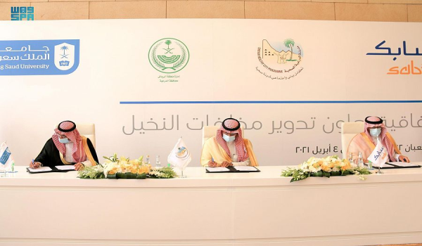 وقع صاحب السمو الأمير أحمد بن عبدالله بن عبدالرحمن محافظ الدرعية رئيس برنامج مدينة الدرعية الصحية، ومعالي رئيس الجامعة الدكتور بدران العمر، والرئيس التنفيذي للشركة السعودية للصناعات الأساسية «سابك» يوسف البنيان، اتفاقية تعاون لإعادة تدوير مخلفات النخيل بمدينة الدرعية بمقر محافظة الدرعية.