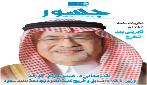 ودعت إدارة المجلة جميع خريجي وخريجات كلية العلوم للمشاركة في تعبئة استبانة «استطلاع رأي خريجي وخريجات كلية العلوم» وذلك بالدخول عبر الباركود المرفق بالمجلة، أو عبر البريد الإلكتروني: jusour@ksu.edu.sa