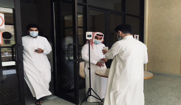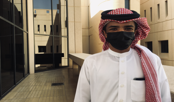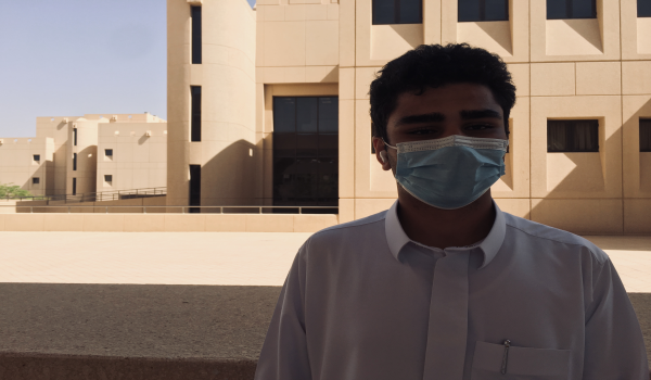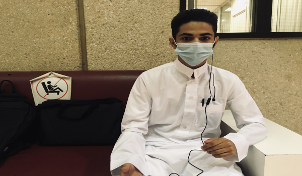 وأثناء جولتنا في بين ممرات الجامعة وجدنا الطالب سعود العقيلي، من الكلية الصحية المستوى الأول حدثنا قائلاً: وأنا قادم إلى الجامعة في المواقف الخارجية كان هناك ازدحام من الطلاب، ولكن عند وصولي إلى مبنى الكلية وجدت ترتيبًا في التنظيم والتأكد من إبراز تطبيق توكلنا وأخذ درجة الحرارة بالإضافة لشرط لبس الكمام.