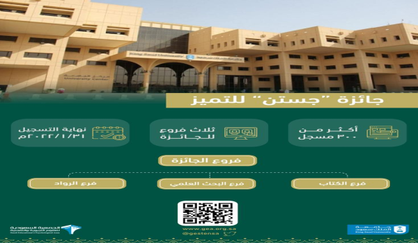 الجدير بالذكر أن جائزة “جستن” للتميز تأتي امتداداً لجهود الجمعية السعودية للعلوم التربوية والنفسية «جستن» في تنمية الفكر العلمي في مجال تخصصاتها وتحقيق التواصل العلمي لأعضائها، ويمكن التقديم على الجائزة عبر الرابط التالي: https://gea.org.sa