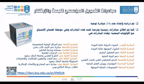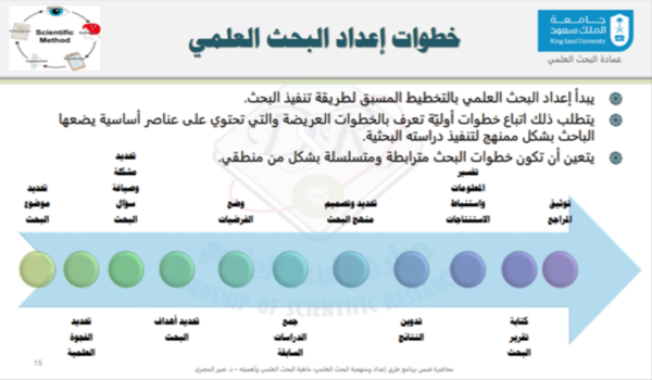 نظمت عمادة البحث العلمي خلال الفترة 20-22/6/1443هـ الموافق 23-25 /1/2022م، البرنامج البحثي «طرق إعداد ومنهجية البحث العلمي» -عن بُعد- ، برعاية عميد عمادة البحث العلمي الدكتور محمد بن إبراهيم الوابل، وبمشاركة نخبة مميزة من أعضاء هيئة التدريس المتحدثين، مستهدفةً بذلك تعزيز القدرات البحثية لدى الباحثين والباحثات.