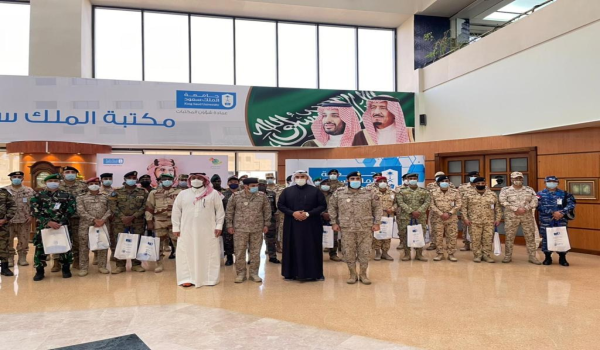 زار عمادة شؤون المكتبات، مؤخراً وفد من كلية القيادة والاركان العامة مكون من 40 ضابطاً من عدة دول مختلفة، حيث تم استقبالهم والترحيب بهم بعد ذلك توجهوا الى قاعة الاستراحة التعليمية للاستماع لشرح مفصل عن العمل في عمادة شؤون المكتبات والمكتبات التابعة لها وماتحتويه من مصادر معلومات وماتقدمه من خدمات.