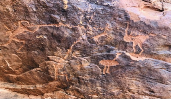 - حقق الفنان العربي القديم نجاحاً مذهلاً في ذلك، حيث حيث صورت لنا الرسوم مشاهد البيئة بكافة عناصرها الطبيعية والحية، حيث أشارت رسوم القوارب النهرية والأسماك والسلاحف إلى تدفق المياه في الأنهار(الأودية الجافة اليوم)، وانتشار البحيرات العذبة، وأعطت أمثلة مما انقرض من مملكة الحيوانات من الأُسود والفهود والفيلة ووحيد القرن واللاما والأبقار والثيران البرية، ومن مملكة الطيور من فصائل النعام وطيور الماء والدجاج البري.