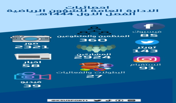 نفذت الإدارة العامة للشؤون الرياضية بعمادة شؤون الطلاب خلال الفصل الدراسي الأول 1444هـ العديد من البطولات والفعاليات والمشاركات الرياضية (طلاب وطالبات) وشملت الفعاليات والبطولات (الداخلية) فعالية اليوم الوطني 92 ، وفعالية اليوم العالمي للرياضة الجامعية، وتزامنا مع اليوم العالمي للصحة النفسية فعالية جلسة اليوغا، وبطولة كرة قدم الصالات، وبطولة كرة الطائرة الشاطئية، وبطولة الجامعة للتنس، وبطولة البلياردو، وبطولة كرة الطائرة، وبطولة كرة الهدف وكرة الطاولة للمكفوفين، وكرة الريشة الطائرة، وغيرها من الفعاليات الرياضية.