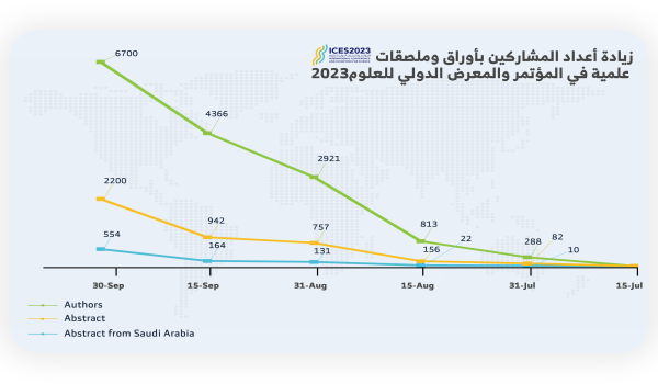 وكان التفاعل مع المحاور السابقة من المشاركين مثريا، وكانت المشاركات كالآتي: في محور الموارد الطبيعية 425 ورقة علمية، وفي محور التقنيات الحيوية 411 ورقة علمية، وفي محور المواد التطبيقية 410 أوراق علمية، وفي محور البيئة وجودة الحياة 331 ورقة عملية، وفي محور الطاقة 248 ورقة علمية، وفي محور النمذجة الرياضية وتطبيقاتها 91 ورقة علمية، وفي محور التعدين 76 ورقة علمية، وفي محور البنية الرياضية وتطبيقاتها 67 ورقة علمية، وفي محور الإحصاء وحماية البيانات 62 ورقة علمية، وفي محور الكيمياء الصناعية 58 ورقة علمية، وفي محور علوم الفضاء 38 ورقة علمية، وفي محور دور المرأة في العلوم 20 ورقة علمية، وجارٍ استقبال المزيد من الأوراق العلمية.