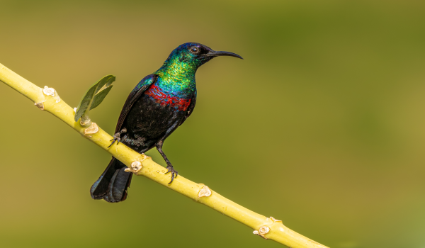 يوجد اختلاف بين الجنسين من حيث اللون، الذكر له لون أخضر مع شريط أحمر في مقدمة الصدر، لكن الأنثى ودون البالغ ألوانهما رمادية.، وهناك ثلاثة أنواع من عائلة طيور الشمس المقيمة في بعض مناطق المملكة العربية السعودية.