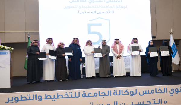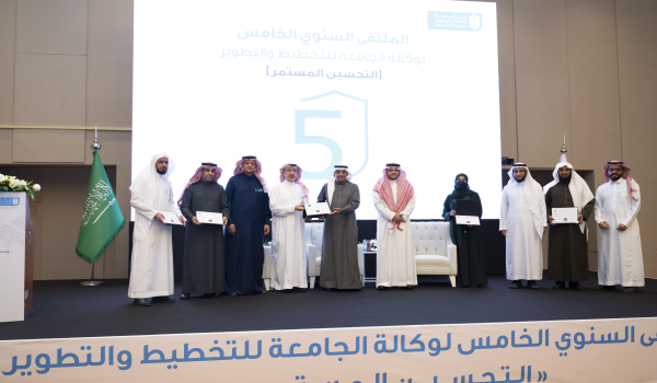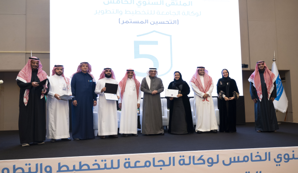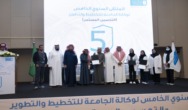 برعاية معالي رئيس الجامعة  الدكتور بدران العمر وحضور عدد من قيادات الجامعة وعمدائها عقدت وكالة الجامعة للتخطيط والتطوير الملتقى السنوي الخامس لوكالة الجامعة للتخطيط والتطوير، بمشاركة أصحاب السعادة وكلاء الكليات والعمادات المساندة للتطوير والجودة، ومساعدات الوكيلات للتطوير والجودة، ورؤساء وحدات التطوير والجودة، تحت شعار )التحسين المستمر(، وذلك يوم الأربعاء: 10 رجب 1444هـ، الساعة 10:30 صباحًا بقاعة الدرعية بمركز الجامعة.