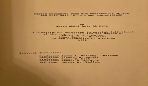 حقا كان كذلك، لم أفكر فيه قبل اللقاء مع أستاذتي، فعند انتهاء السنة التمهيدية استشرتها عن الموضوع الذي يمكن أن أبحث فيه ، اقترحت عليّ هذا الموضوع الذي يتصل بكيفية استخدام الشعراء للغة . كان هذا المنهج آنذاك جديدا في اللغة الإنجليزية، وحدثتني عن مؤلف إنجليزي طبقه على بعض الشعراء الإنجليز، وأطلعتني على كتاب باللغة الإنجليزية. كانت معرفتي بالإنجليزية لا تمكّنني من القراءة إلا بصعوبة بالغة وإنفاق زمن طويل، عشرات الكلمات في الصفحة الواحدة تحتاج إلى مراجعة القاموس؛ لكن هذا الاقتراح وافق رغبتي في أن أدرس شيئا جديدا وليس مكررا فقبلت الاقتراح . فكرة الموضوع تتصل بمعرفة الصلة بين اللغة والأسلوب الأدبي، وأن اللغة الشعرية لشاعر ما يمكن أن تتميز بسمات خاصة يمكن التوصل إليها من خلال إحصاء الألفاظ والتراكيب التي يستعملها في قصائده في سياقات مختلفة، وملاحظة كيفية استخدامه لها .