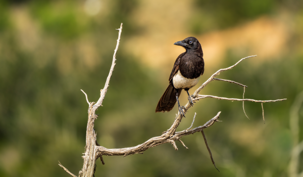 يبلغ طول العقعق العسيري ما بين 45-60 سم، ولونه أسود لامع مع بطن أبيض، وهو من الطيور المستوطنة والمهددة بالانقراض بشدة، حيث لا يتجاوز عددها 100 زوج متكاثر على مستوى العالم، ويتواجد فقط في مرتفعات الجنوبية الغربية من المملكة العربية السعودية.