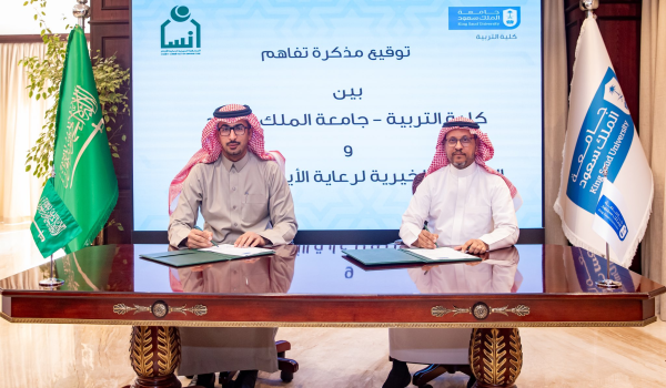 نيابة عن معالي رئيس الجامعة الدكتور بدران بن عبدالرحمن العمر وقع نائب رئيس الجامعة للشؤون التعليمية والأكاديمية الدكتور محمد بن صالح النمي مذكرة تفاهم بين كلية التربية والجمعية الخيرية لرعاية الأيتام بمنطقة الرياض (إنسان)، والمؤسسة الخيرية لرعاية الأيتام (إخاء)، حيث تهدف هذه الاتفاقية إلى تقديم الاستشارات النفسية وعمل الدراسات والبحوث العلمية التي تخدم فئة الأيتام.