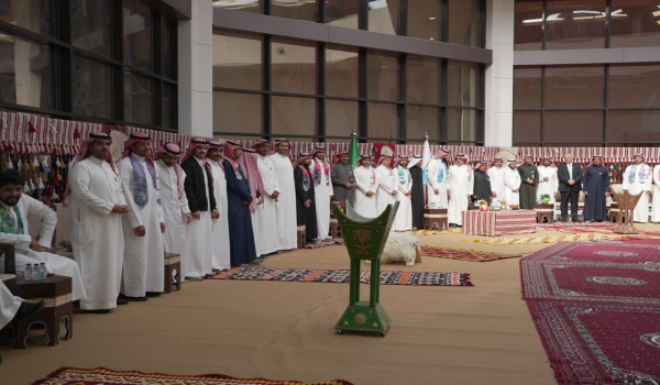 وتخلل الحفل عروضاً مرئية بيّنت عمق وامتداد تاريخ الدولة السعودية وارتباط ماضيها بحاضرها، مستلهمة عزيمة قادتها وملوكها في العبور بسفينة الوطن لتصل إلى شواطئ الاستقرار والازدهار.