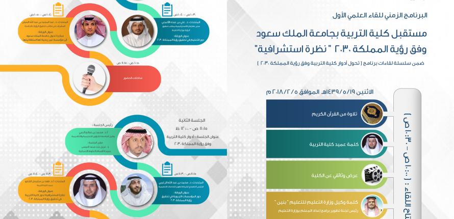 مستقبل "التربية" غداً 1 Feb 2018 بواسطة رسالة الجامعة بحضور وكيل وزارة التعليم وبرعاية مدير الجامعة «التربية» تقيم لقاءها العلمي الأول د.الشايع: اللقاء يأتي ضمن استراتيجيات الجامعة في التحول لمنظمة غير اقرأ المزيد