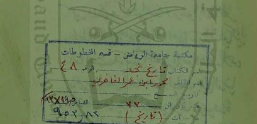مخطوطة «تاريخ نجد» من أقدم ما كتب عن تاريخ الدرعية 30 Dec 2021 بواسطة رسالة الجامعة كشفت عمادة شؤون المكتبات، بالتزامن مع اختيار الدرعية عاصمة الثقافة العربية 2030 عن امتلاك جامعة الملك سعود مخطوطة «تاريخ نجد» لمؤلفها محمد بن عمر اقرأ المزيد