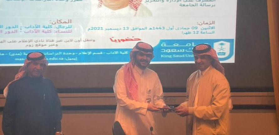 شؤون المكتبات تدشن سلسلة برنامج التواصل المعرفي.. الأربعاء 14 Dec 2021 بواسطة رسالة الجامعة يلقي مدير عام شركة العبيكان للنشر والتوزيع الأستاذ محمد بن عبدالله الفريح، عند الثامنة من مساء يوم الإربعاء القادم، محاضرة بعنوان «المشاع الإبداعي- اقرأ المزيد